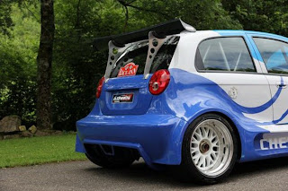 stato cambiato: il numero uno del team, Yves Fourdin, ha studiato un apposito kit per la carrozzeria in cui sembrano letteralmente affondare i cerchi in lega da competizione da 18 pollici che calzano pneumatici slick.