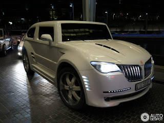La base di partenza è quella di una BMW X6, della quale viene mantenuta l’intera parte posteriore con l’aggiunta di un apposito body kit, mentre il resto della carrozzeria è preso in prestito da un’Hummer H2. Di ogirine BMW sono anche i gruppi ottici anteriori (sembrano quelli di una Serie 5 GT) e la griglia e ripresa pari pari da quella di una delle ultime Lincoln. Insomma, siamo di frontaead una BMW-Hummer-Lincoln. Il risultato non poteva essere soddisfacente…