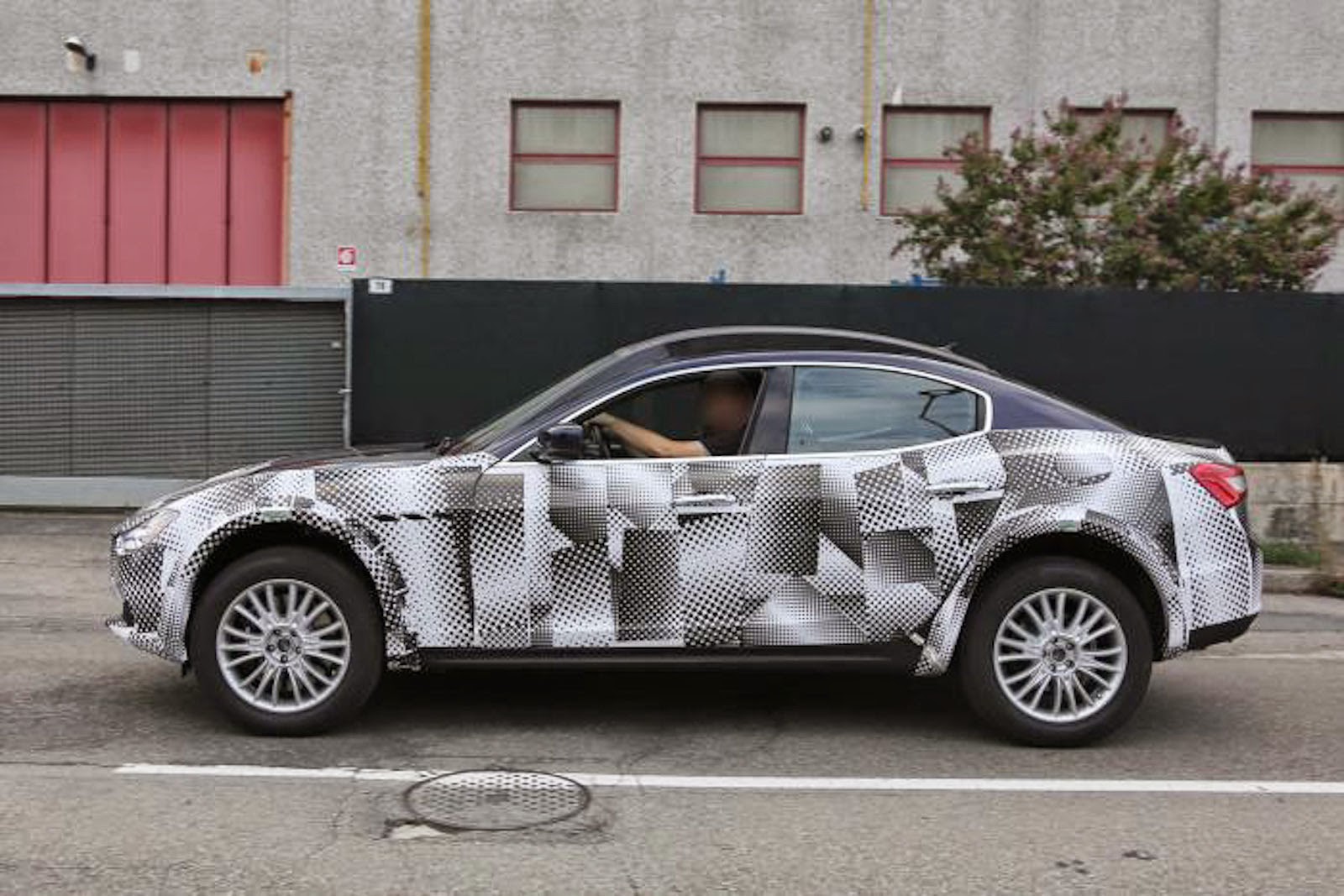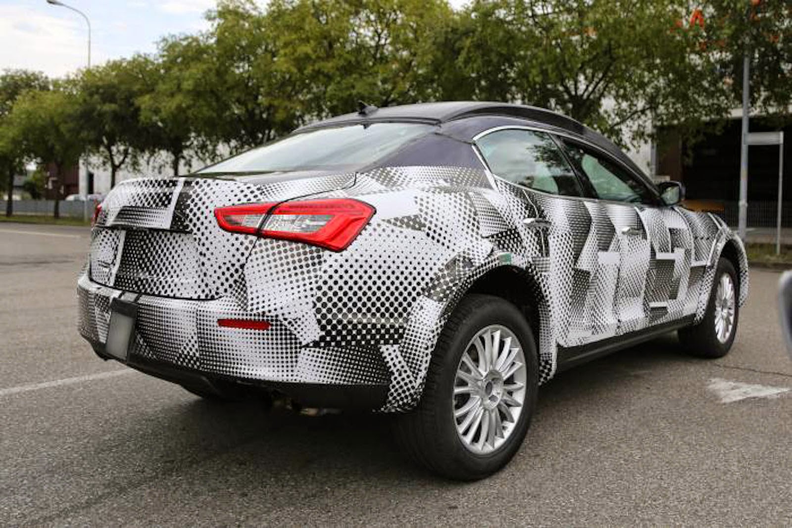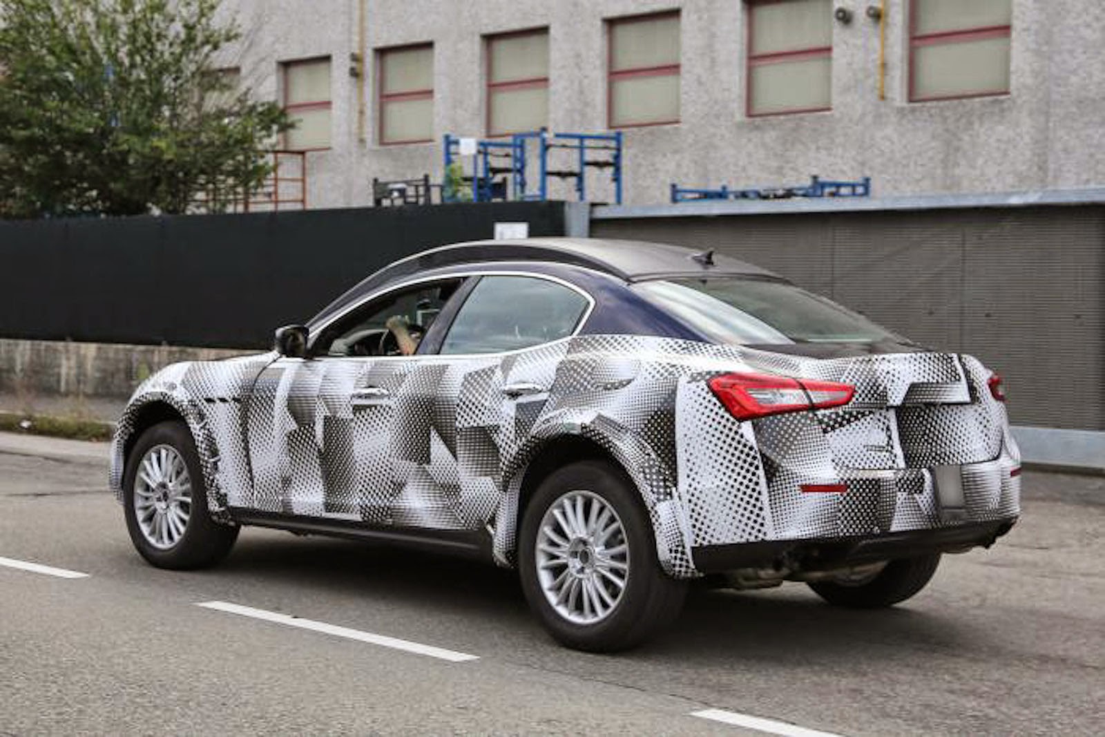 va a confermare le indiscrezioni delle scorse settimane, secondo cui la Levante non sarà realizzata partendo dalla piattaforma della Jeep Gran Cherokee ma dalla stessa di Ghibli e Quattroporte, contando quindi anche sulla trazione integrale Q4 realizzata sempre dagli ingegneri Maserati. Da quanto è possibile intuire da queste foto spia, la nuova Levante sarà lunga come la Ghibli ma sarà più larga e – naturalmente – più alta. Il fatto che vi sia un rialzo sul tetto non è un caso: è utile a simulare un centro di gravità più alto.